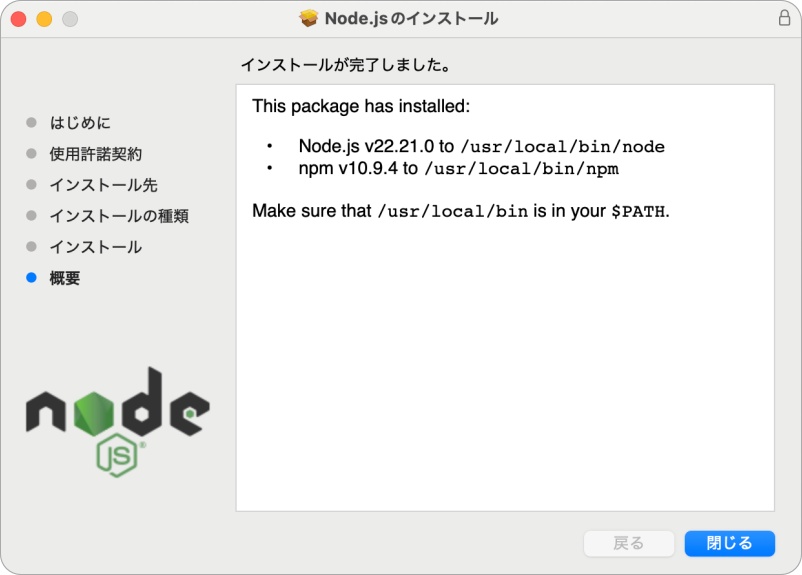 Node.js をインストーラーから直接インストールした人が対象になります。Homebrewといったパッケージ管理ツールや、nvm、fnmなどといったバージョン管理ツールを利用してインストールした方は、違った手順になるかと思います。