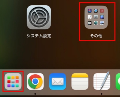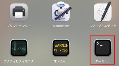 ターミナルを起動します。画面下のDockからLaunchpadを開き、その他→ターミナル、を選択します。