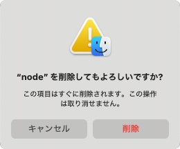 先述していますが、私は「/usr/local/lib/node_modules」をFinderから削除してややこしいことになったので、特にこのフォルダはコマンドで削除した方がよさそうです。