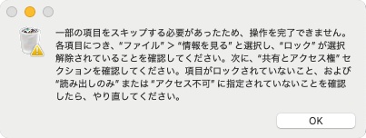 削除できないというメッセージが表示されてしまいました。「ロックが解除されているか?」「権限は読み出しのみなどになっていないか?」を確認するようにと書かれています。